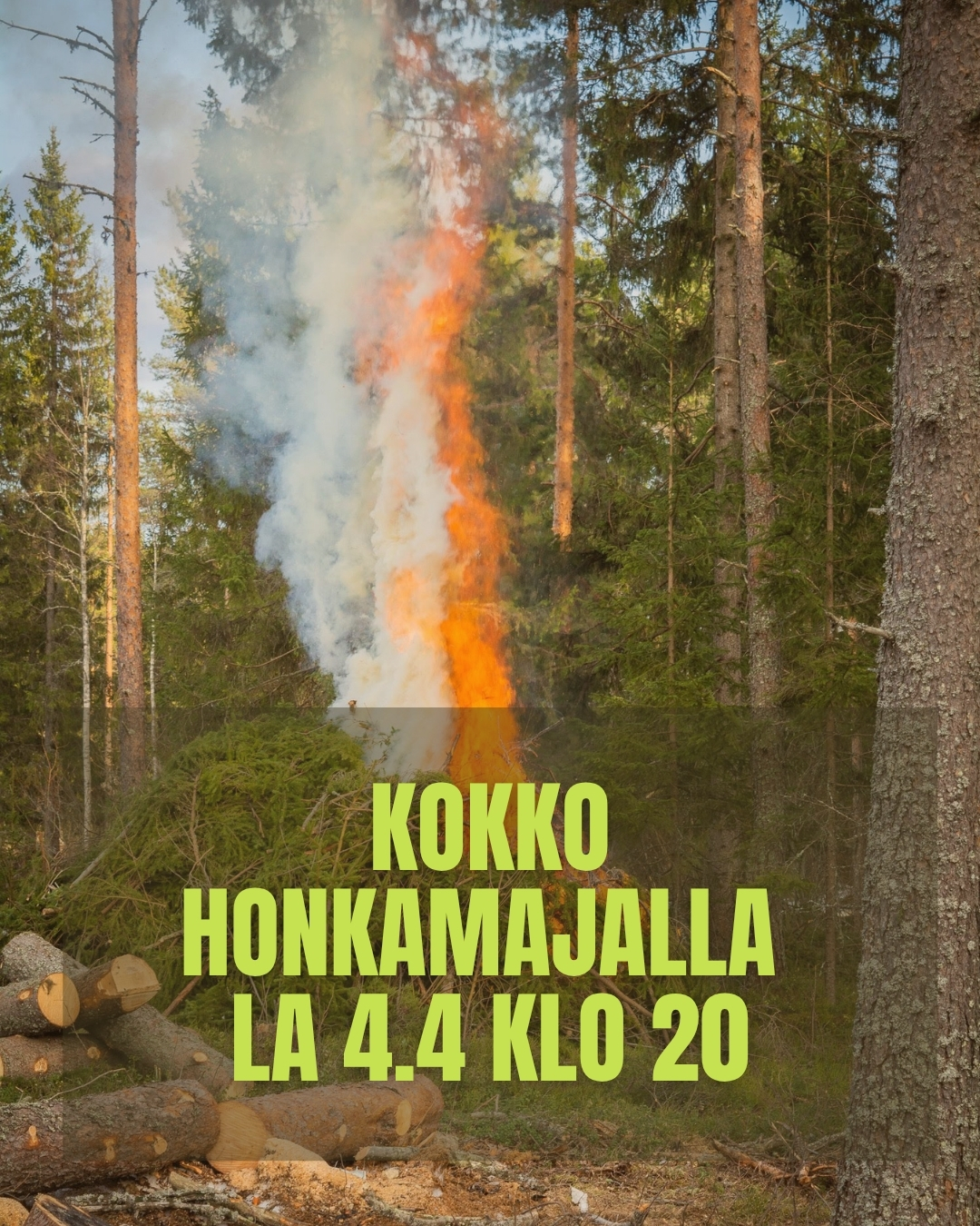 La 4.4 klo 20 sytytetään kokko Honkamajalla. Osoite Hietalantie 91, 86300 Oulainen.